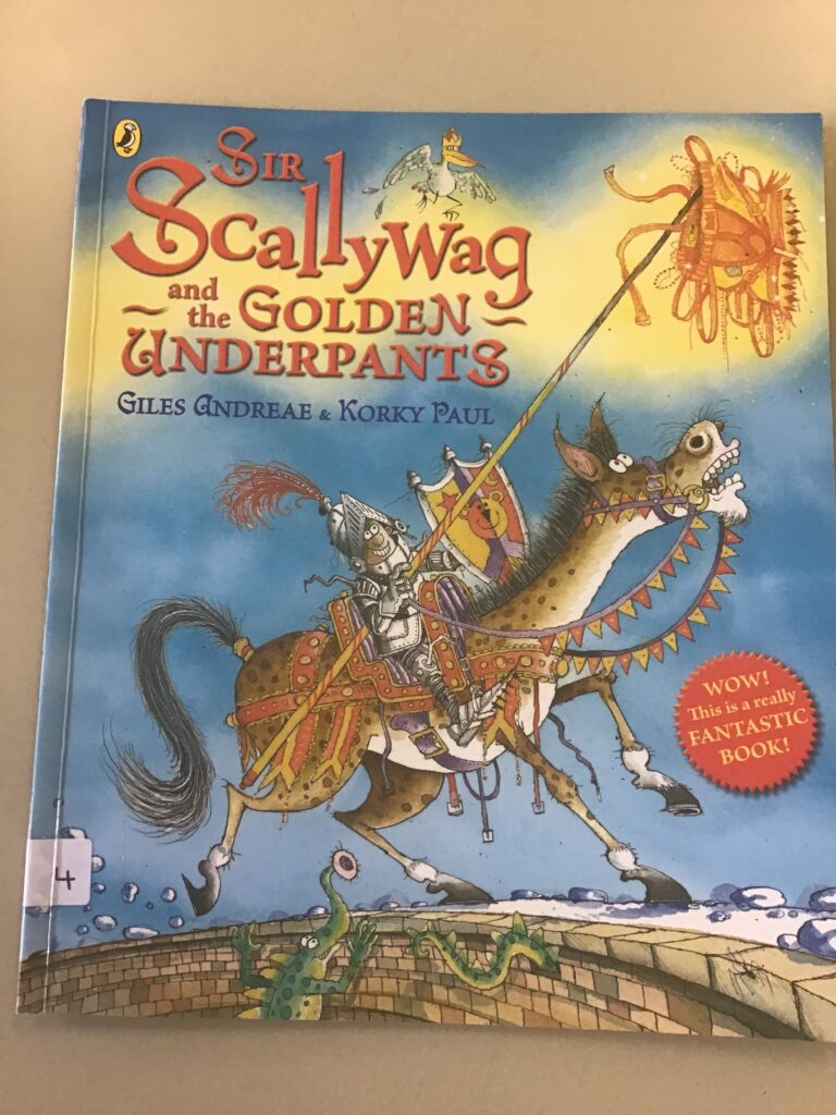 The book was ‘Sir Scallywag and the Golden Underpants’ by Giles Andrae and Korky Paul. We were very excited to start reading it. Some of us had heard it before but many of us hadn’t.