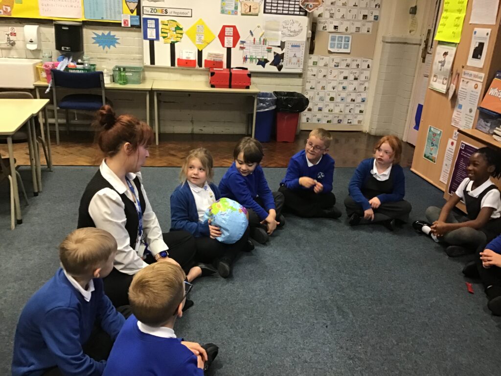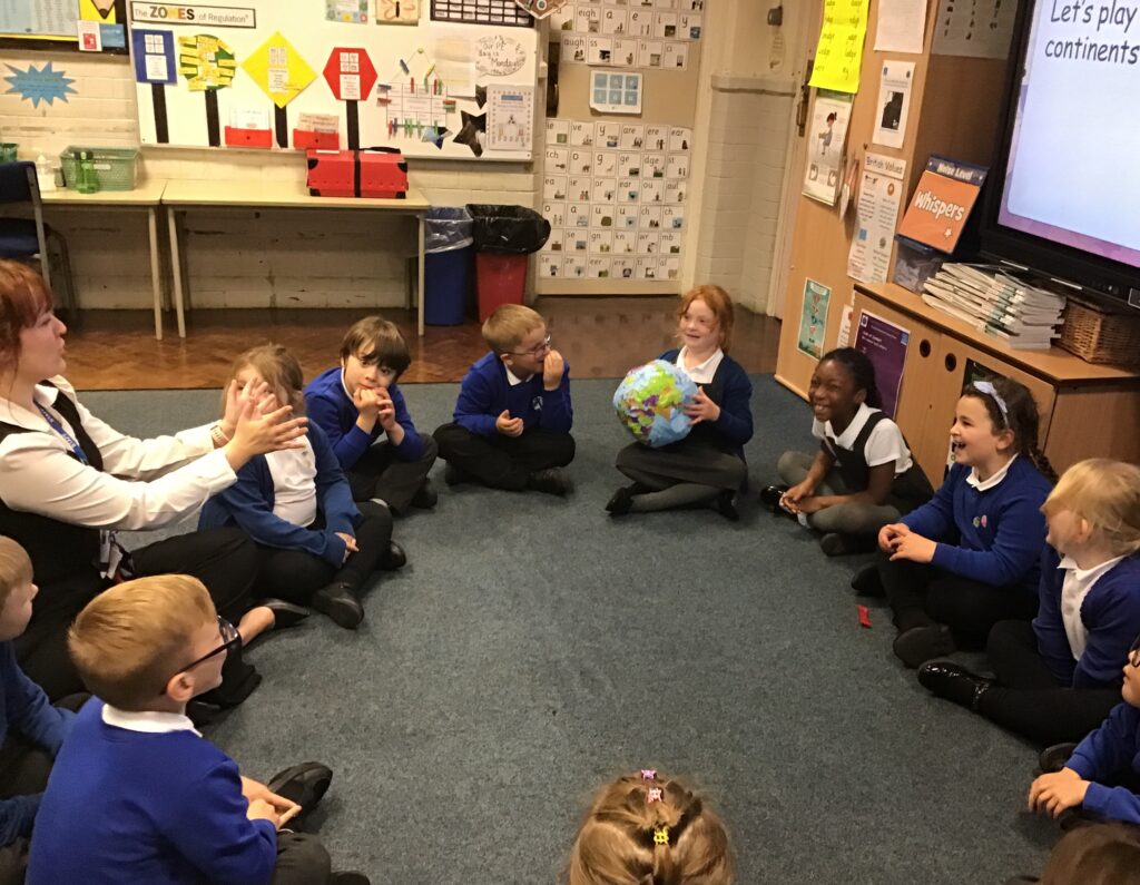 We started our lesson with a game of Around the World! The globe gets passed around the circle; each child who gets the globe has to answer a question. If they answer the question correctly, the children were awarded with a point. If they answer incorrectly, Miss Quinn was awarded a point. It’s like Question Time meets Beat the Teacher!