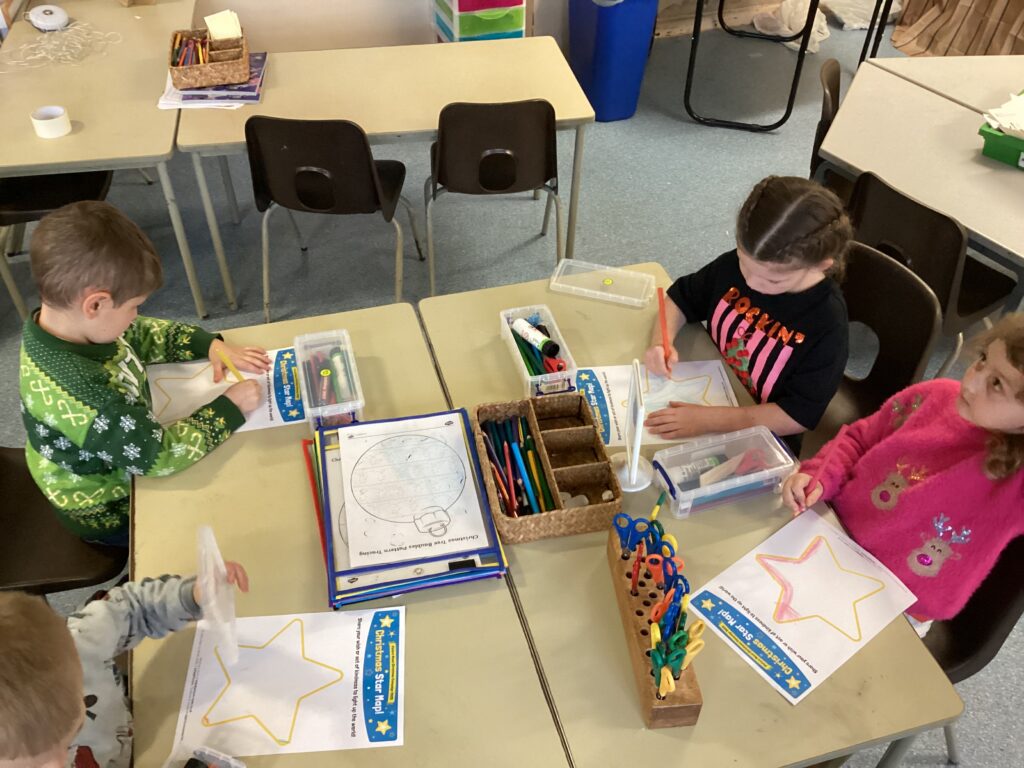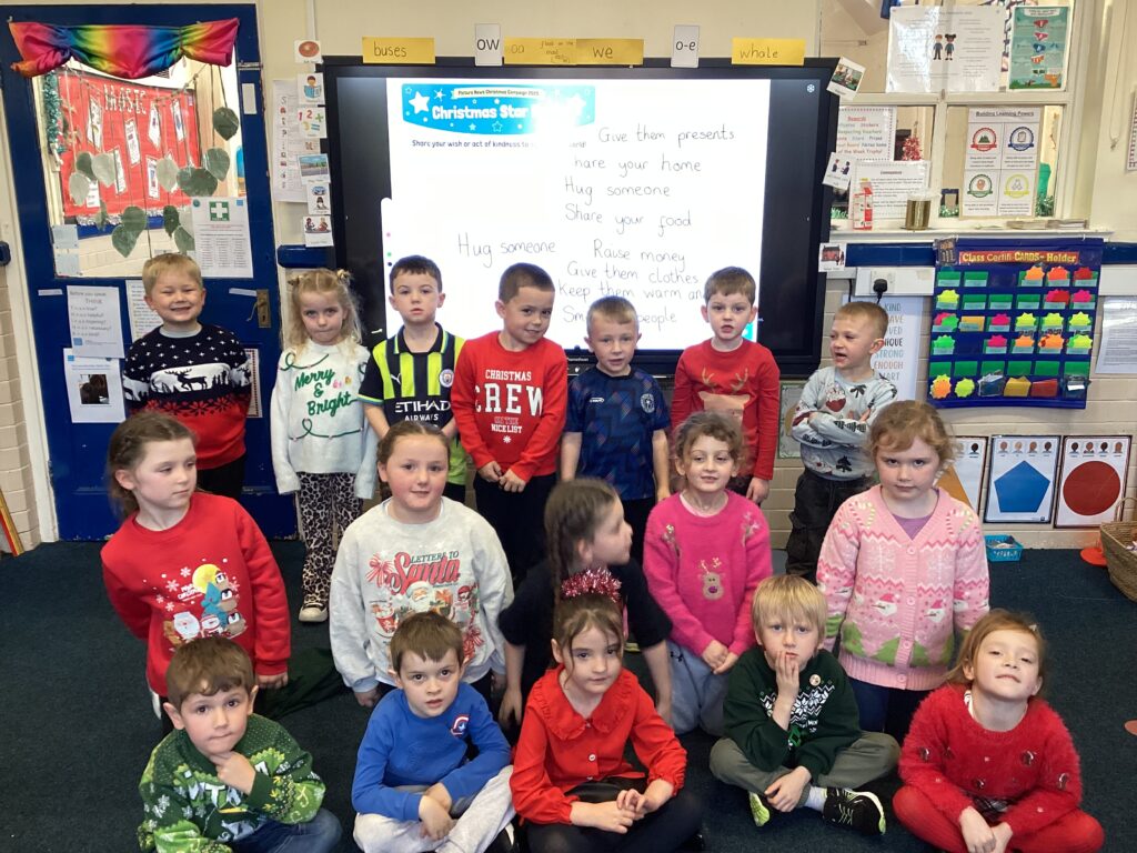 In Year 1, the celebrations continued through Picture News, where the children explored the theme of the “Christmas Star Map.” They learned about how stars have guided people for centuries and then shared their own acts of kindness or wishes to light up the sky. From helping friends to wishing for peace and happiness, the children’s ideas shone brightly—just like the stars they mapped.