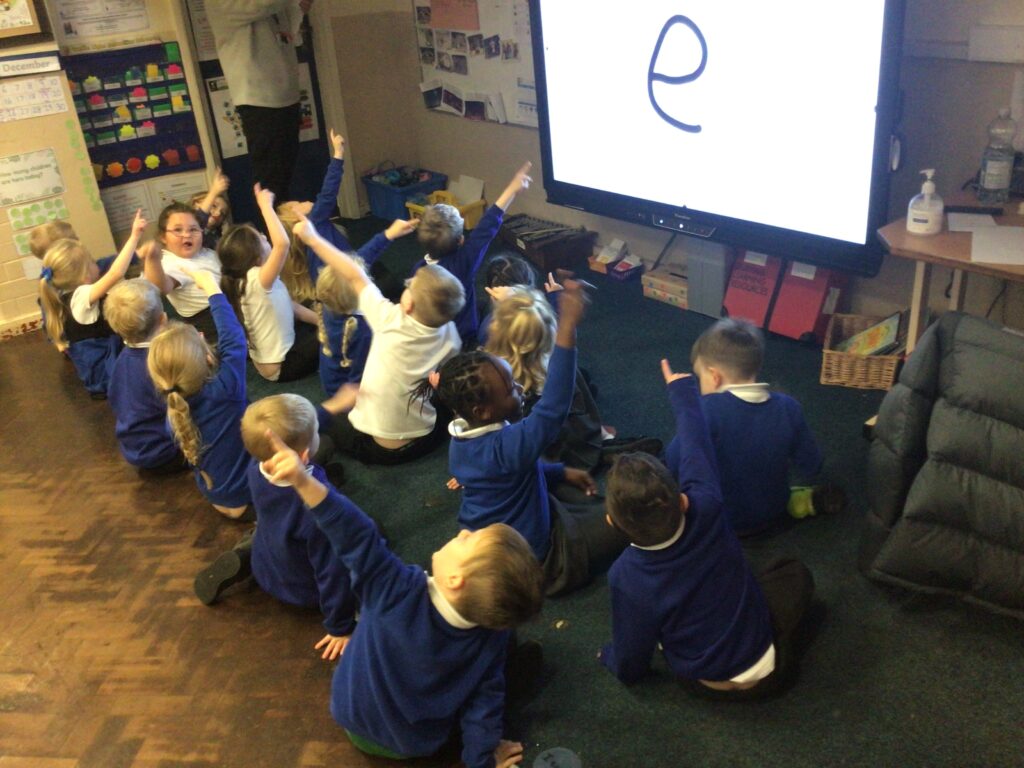 In our Squiggle Me into a Writer session on Friday, Year 1 have been busy developing their early writing skills through a combination of gross and fine motor movements. Following the scheme, we explored large, flowing movements to help strengthen the muscles needed for writing and to build children’s confidence in mark-making. The class then focused on the letter e, practising the correct formation. Children traced the letter in the air, formed it on the floor, and finally applied their skills on individual whiteboards. This multi-sensory approach helped everyone engage, practise and progress as emerging writers.