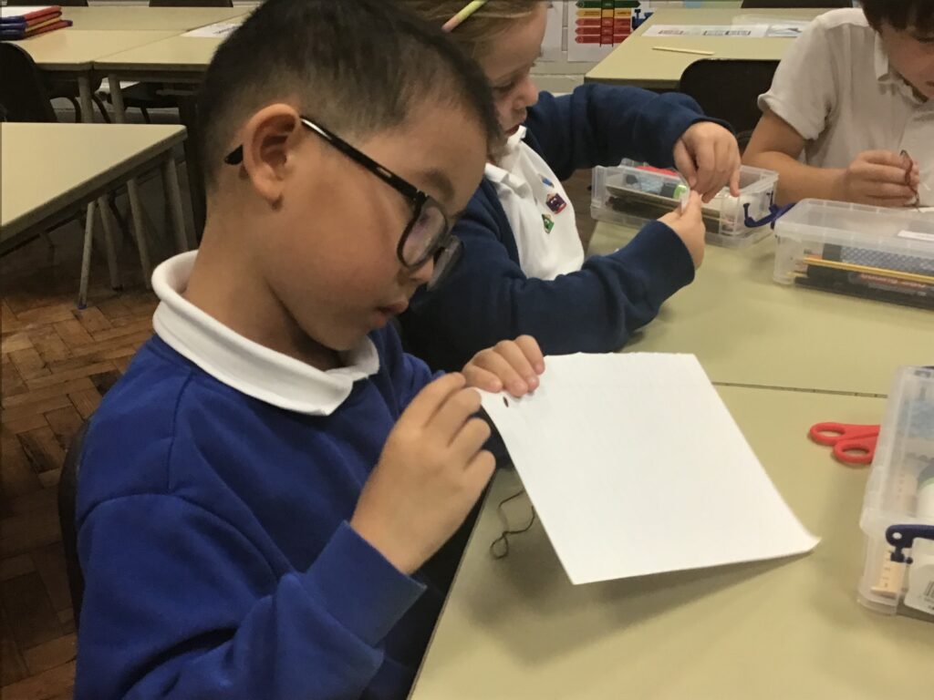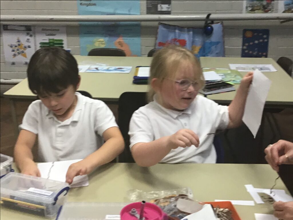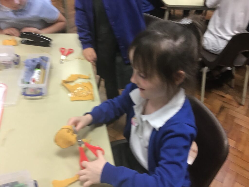 The children were in two different groups, and each group had a different task. One group had to look at their sewing skills and practise a running stitch using lined paper to help them and the other had to use their cutting skills to cut out a circle from a piece of fabric and then, use a stapler or Sellotape to join two pieces of fabric together. We successfully joined the pieces of fabric together and discussed which medium, of tape or staples, would be better for our puppets. Year 2 shared some brilliant and inquisitive ideas and respected their right to be safe throughout. We were very impressed with their work and they showed their rights in action.