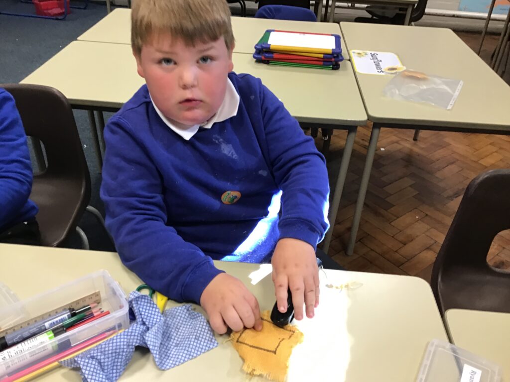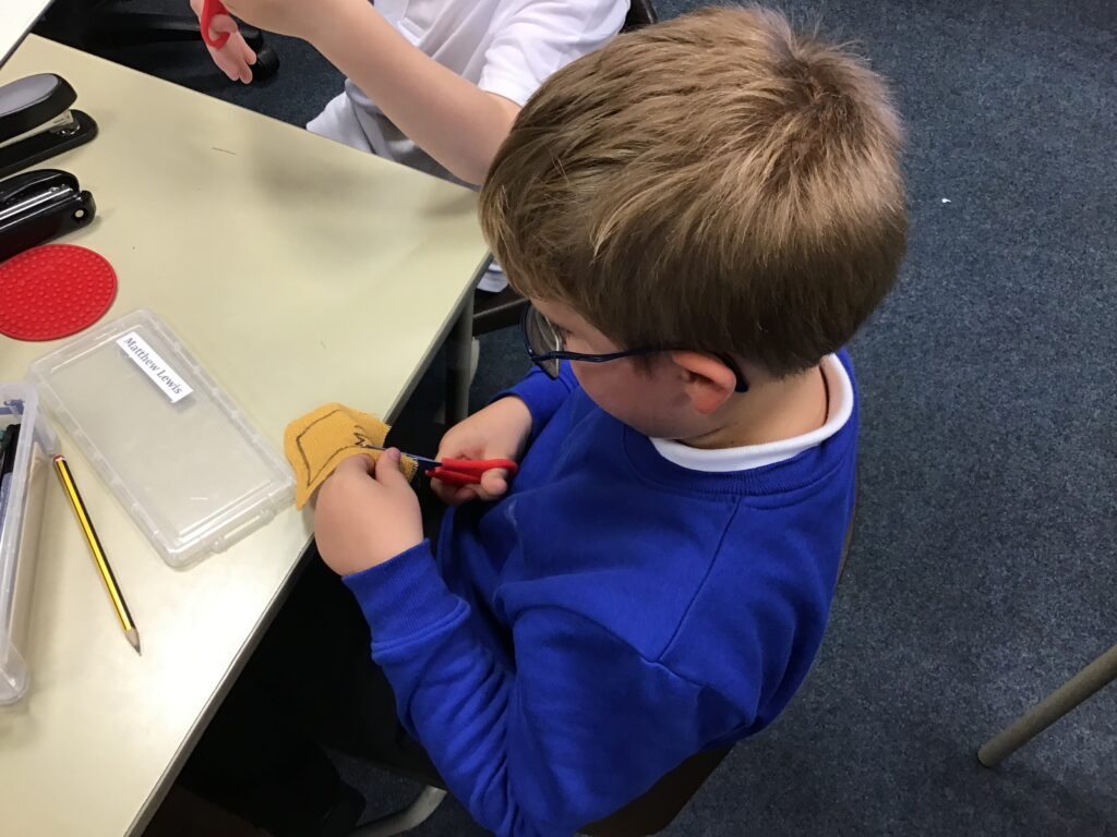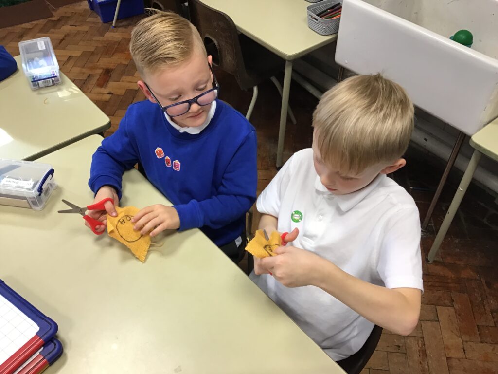 Year 2 have been learning how to cut material and make joins in Design and Technology. They found it tricky to thread a needle at first but with some perseverance, they all managed it. They then begin to join using a running stitch. By showing determination and patience, children were able to join the two pieces of fabric they had cut earlier. They also tried using glue, a stapler and blue tac to join but decided stitching was the best choice for the puppets they are going to make as this creates stronger joins.