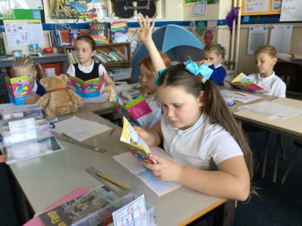 In English, we have been reading the conversation poem ‘Please Mrs. Butler ‘ by Allan Ahlberg, so today we became poets and composed our own verses for the poem. A lot of interesting ideas were put forward as to what the teacher should say!