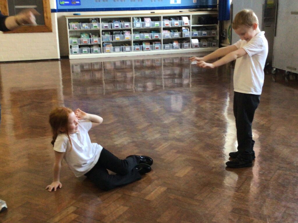 In Guided Reading, we had talked about wispy smoke and half-way through the performance there was plenty of smoke rolling across the stage and onto us in the front row. One of the highlights was the bucket of milk being thrown onto the front row, I wish you could have seen the children’s faces as they realised it was just paper.