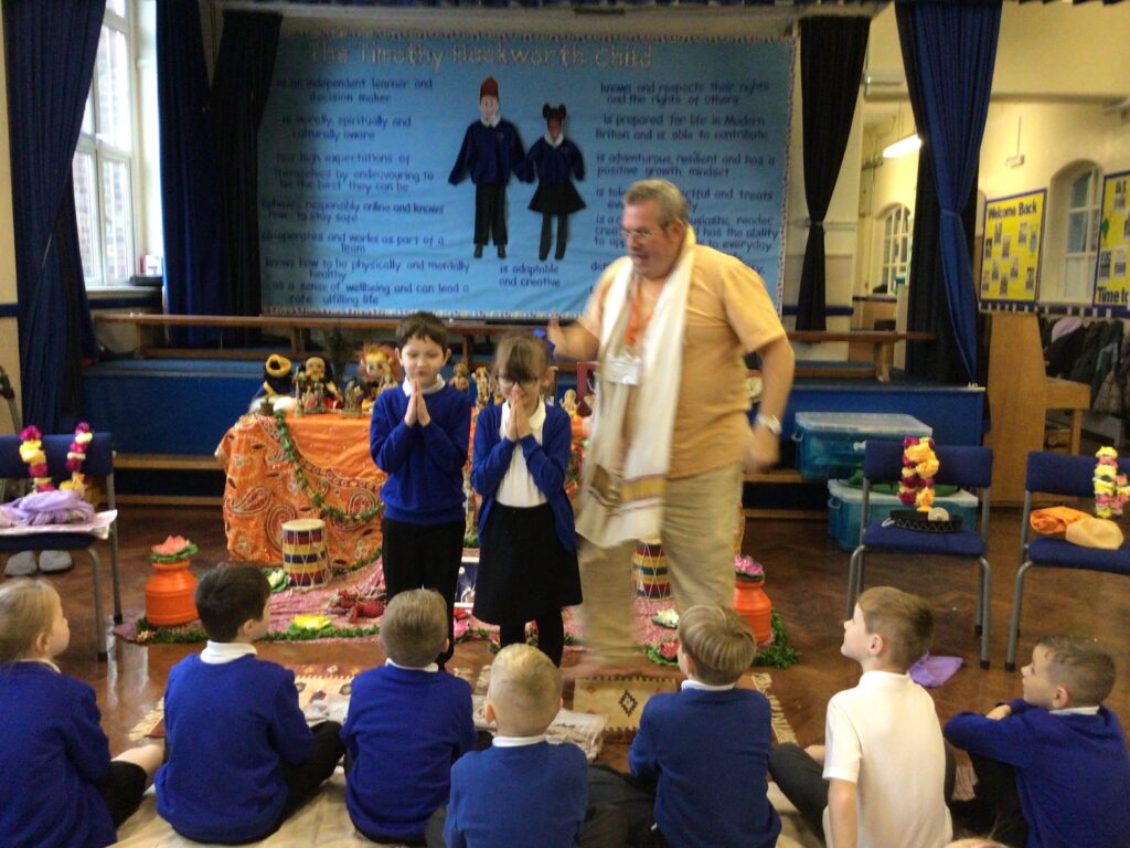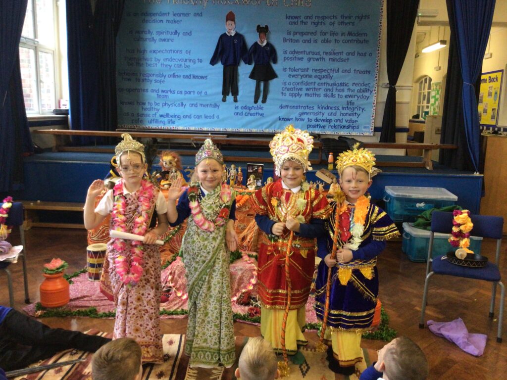 This week, Year 3 participated in a Hindu workshop. Sakyha delivered our interactive workshop and he came all the way from Birmingham to be with us! We recapped a lot of our learning from our R.E. lessons last half term and managed to learn some new information about the religion of Hinduism. Some children even managed to dress up and act out the story of Rama and Sita- a Hindu story about how good defeats evil/light over darkness. All children participated in either face painting or having their hands painted. The children thoroughly enjoyed this workshop. Take a look at some of our pictures from the day…