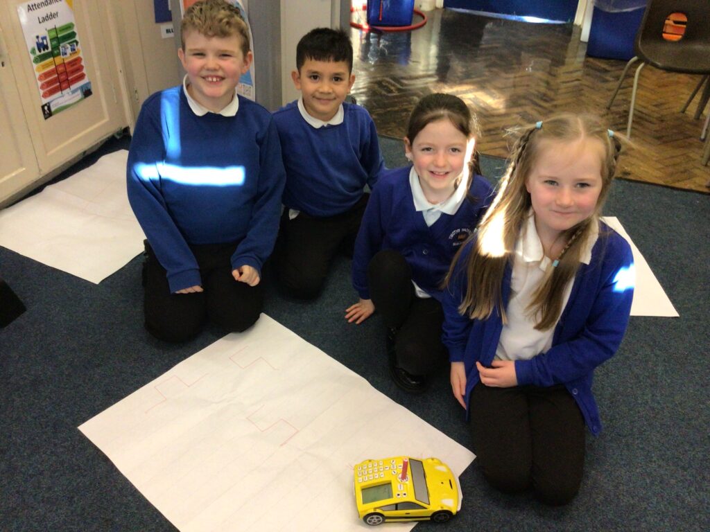 In Computing, we have been looking at a new piece of hardware called a Probot. A Probot is used to create an algorithm in order to create a drawing on a piece of paper. We learnt that an algorithm is an instruction in which you give a computer. We used our problem- solving skills this week in order to write an algorithm on our Probot to create a number on our larger sheets of paper. This was very tricky, but we managed to create a number 5 and 2. Some groups were fantastic and even managed to create a number 3, 6 and 8.