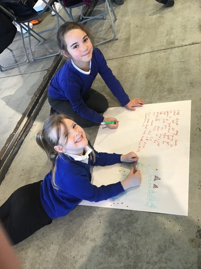 The children then worked with singer-songwriter Rosie Bradford to pool their thoughts, feelings and ideas about what living and attending school in Shildon meant to them. Rosie then used the children’s work to create a new verse for The Iron Road – that children from all the primary schools then performed together.