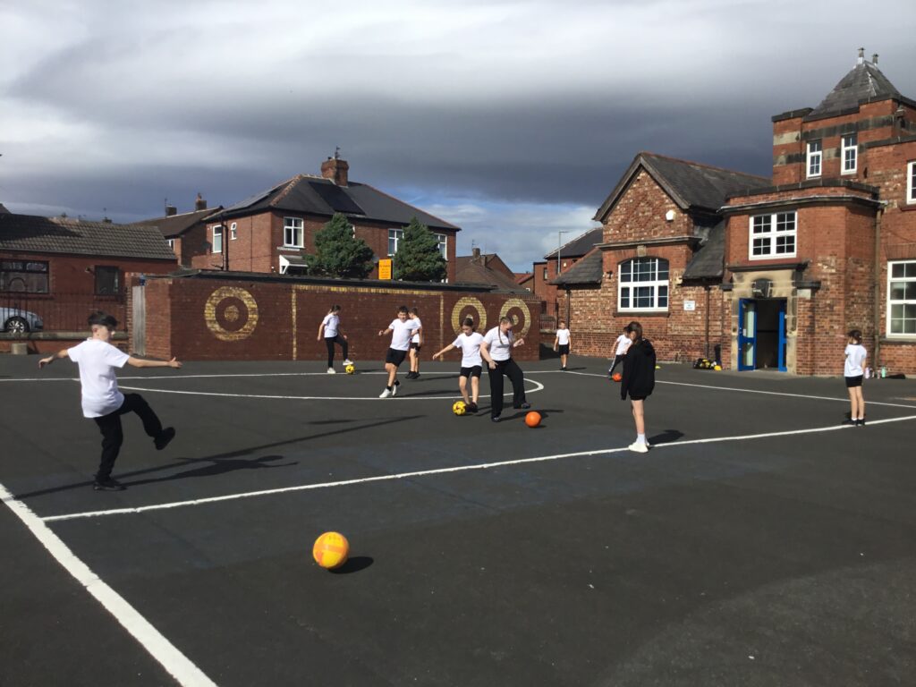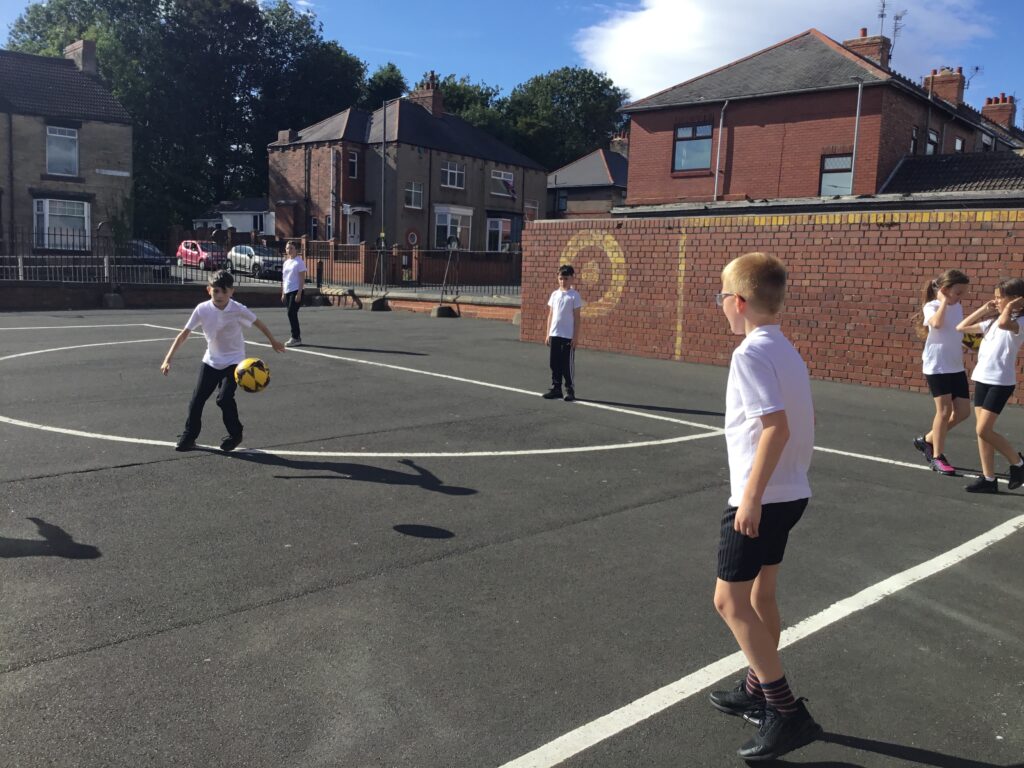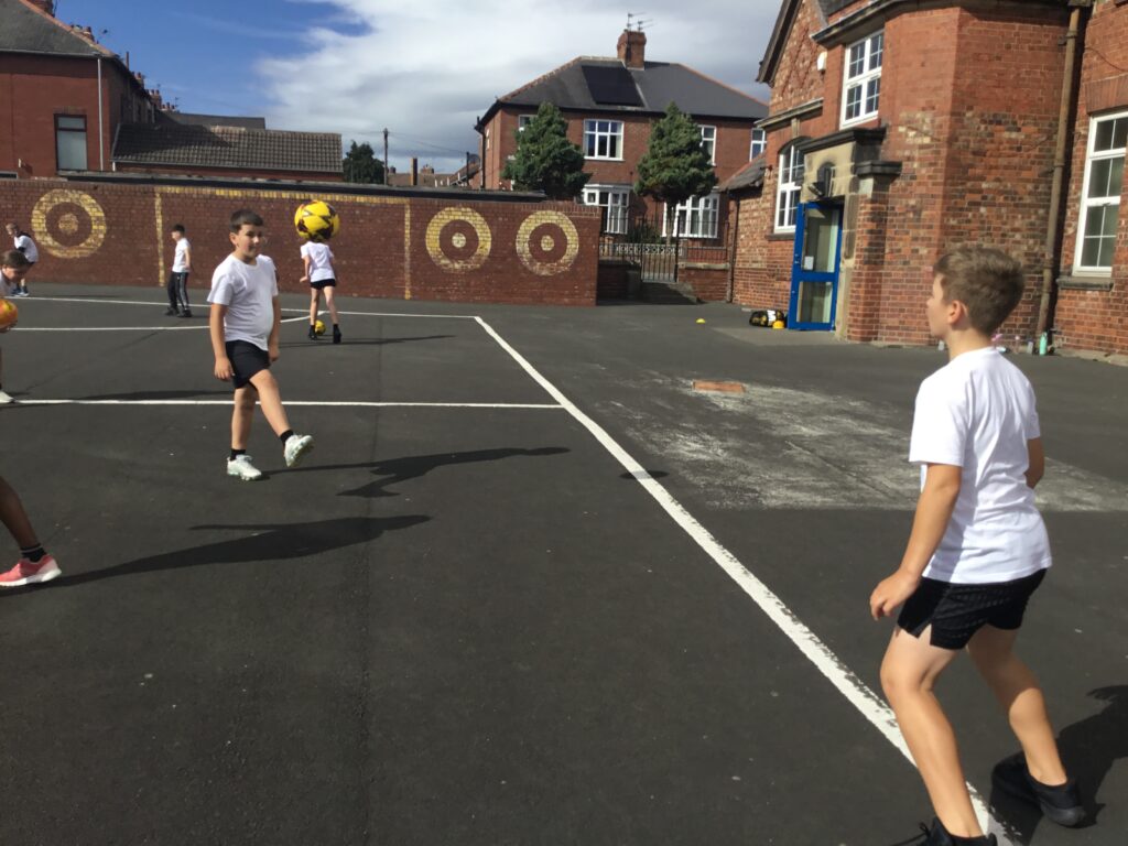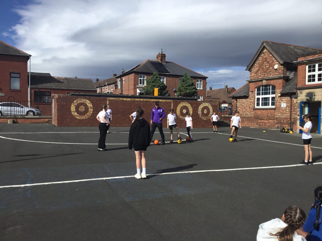 We were lucky to have an extra PE lesson this week delivered by our football coach.