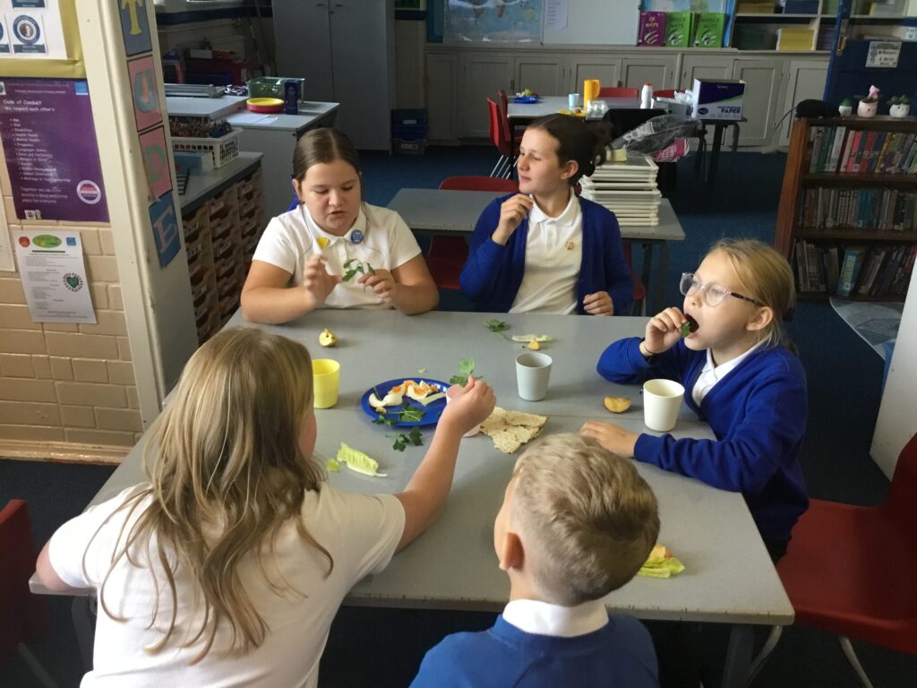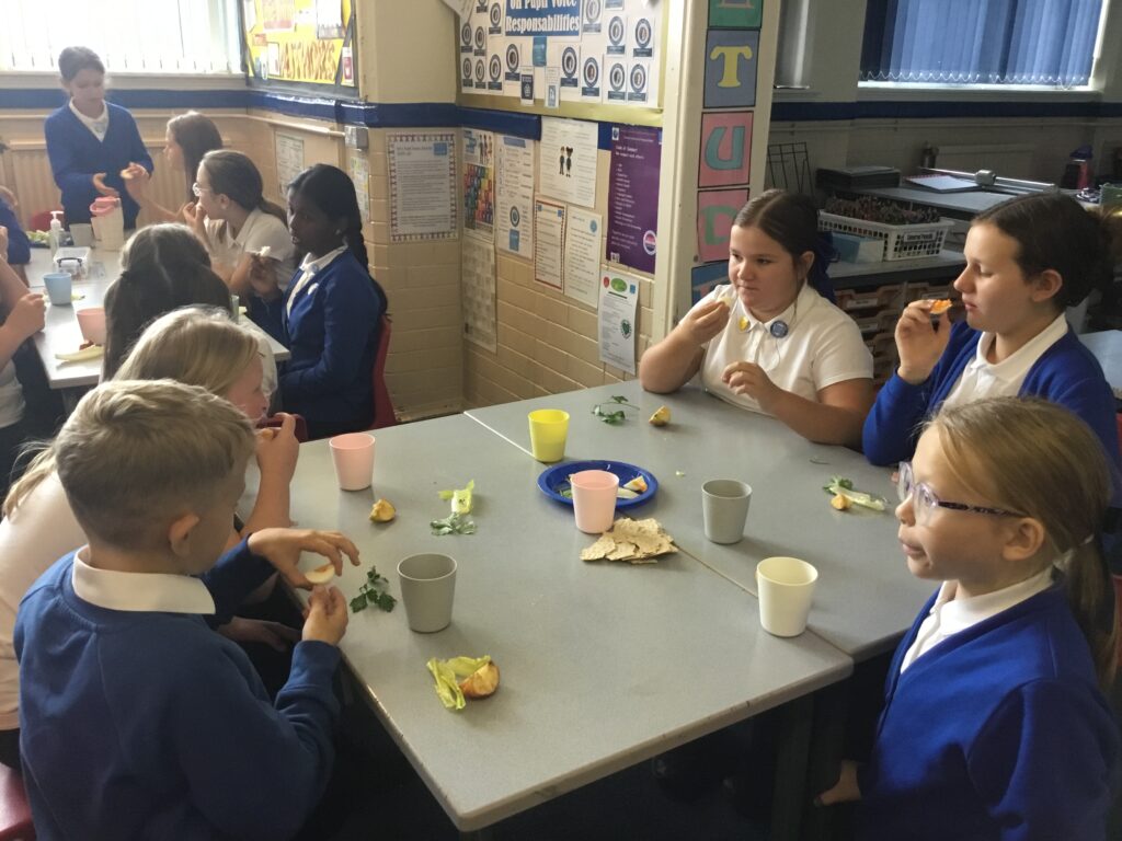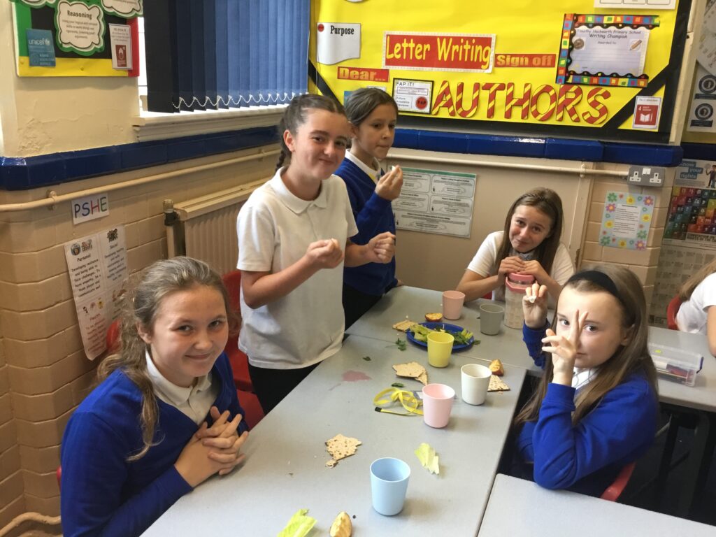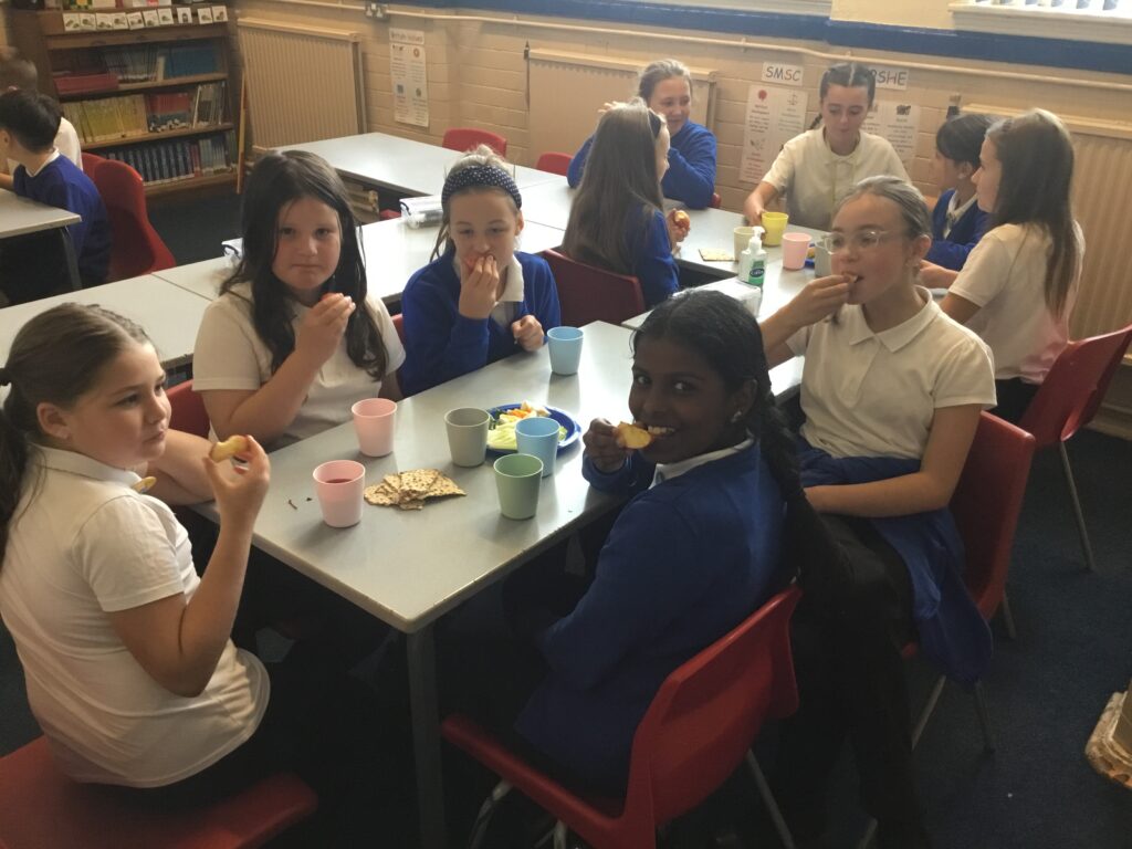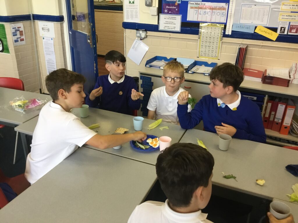 Year 6 have been studying a unit of work on rituals that come from different religions. So far this term, we have studied the Christian ritual of The Eucharist, the Islamic prayer ritual of Salah and this week we looked at the Jewish ritual meal of Pesach (Passover). We identified the different foods and what religious meanings they have to some Jewish people then we tasted the different foods that make up the Seder meal plate. Some of the tastes were very bitter or salty to represent suffering or tears, but this didn’t put the children off trying them.